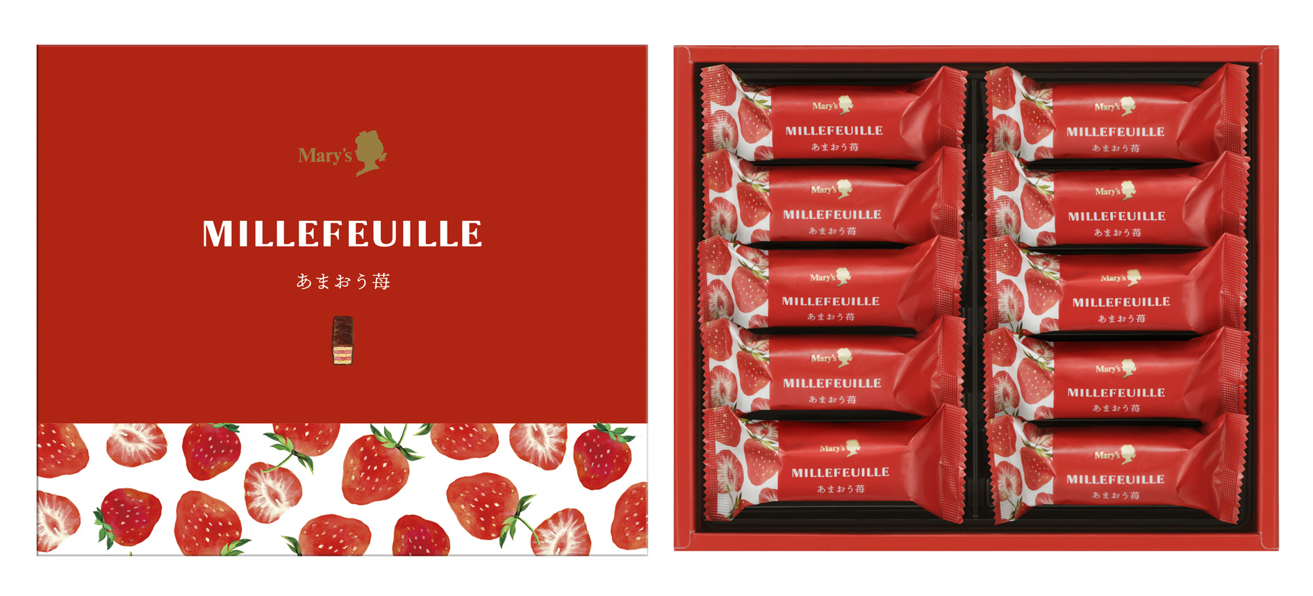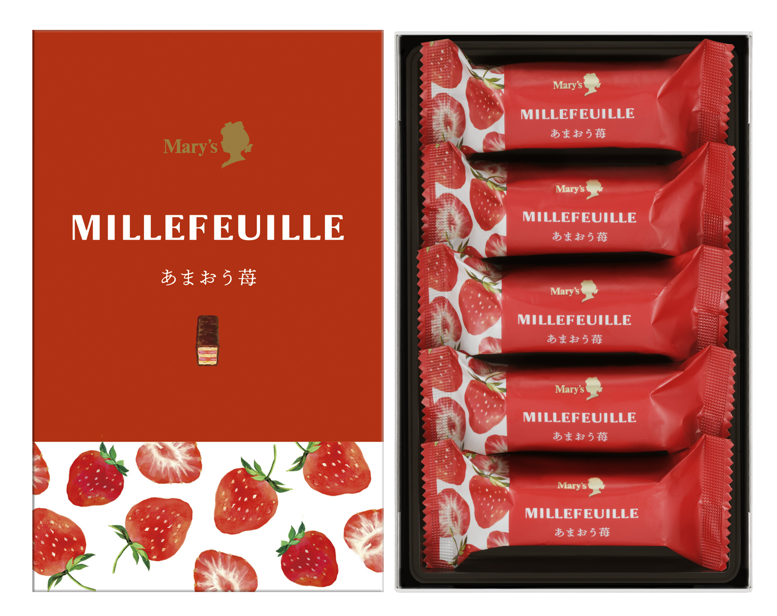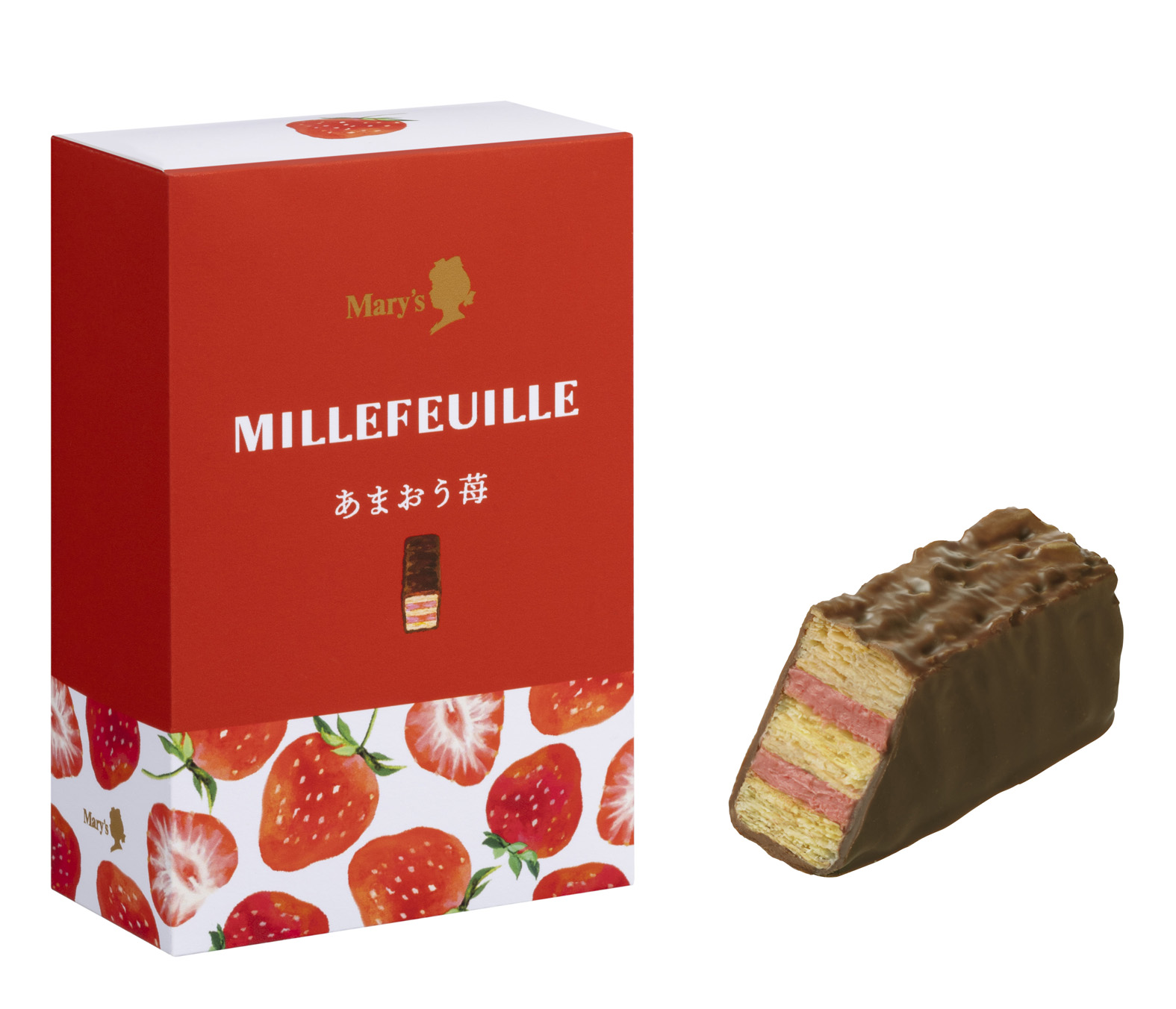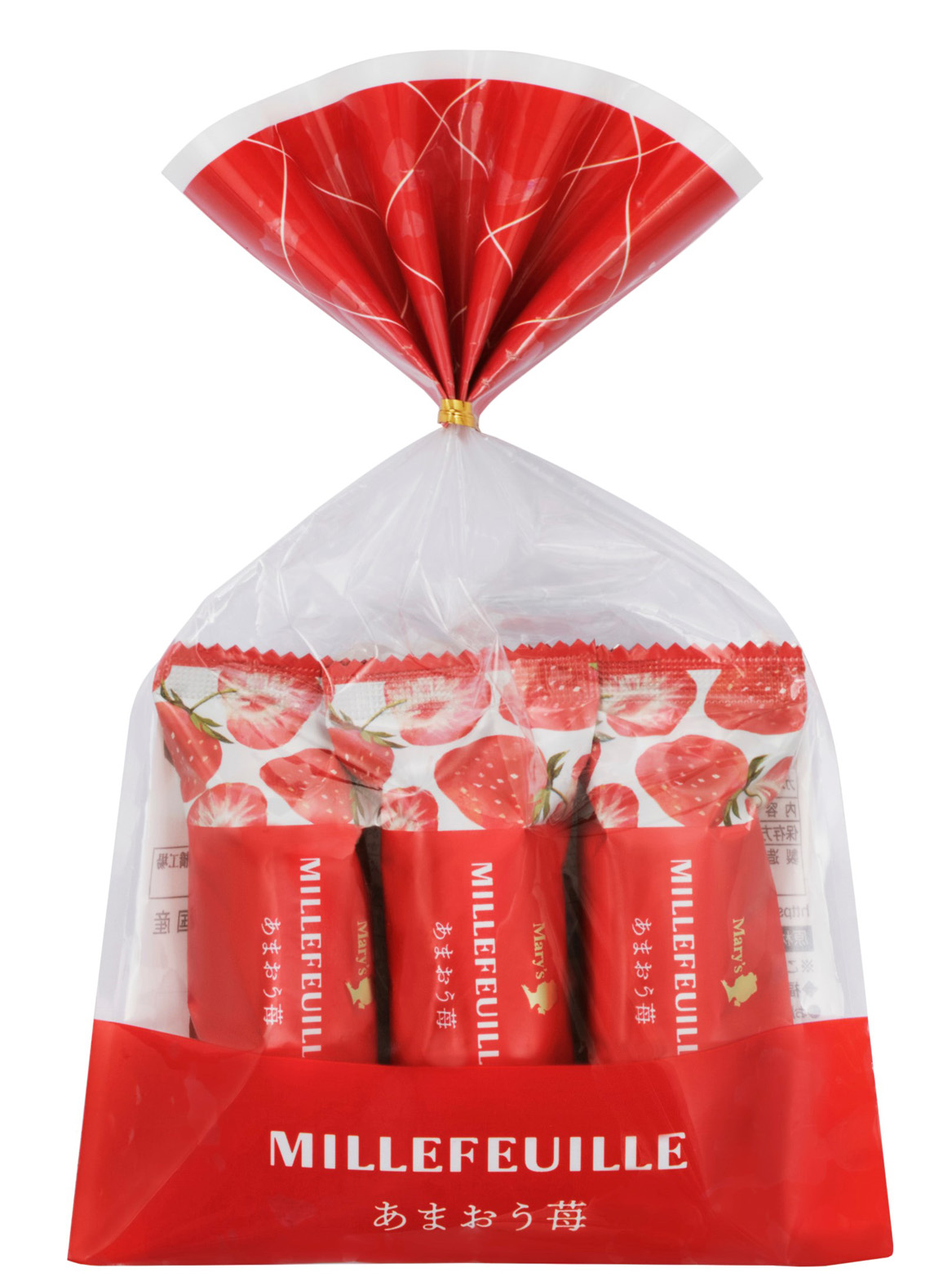 ジューシーな甘みの福岡県産あまおう苺をクリームにして、サクサクとした食感のパイでサンド。