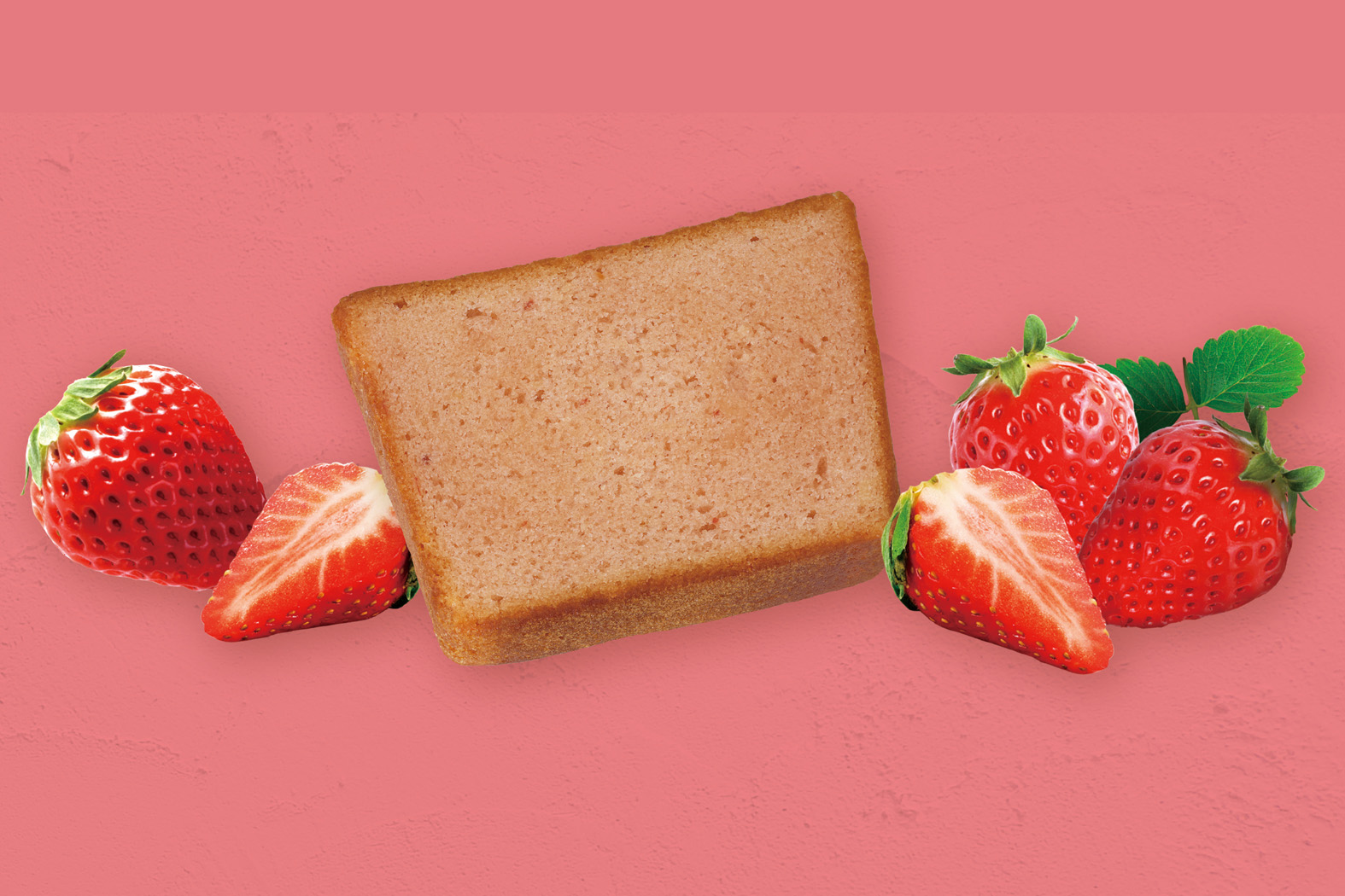 あまおういちごの酸味、甘みと生地に入れたホワイトチョコレートのコクがバランス良く調和した味わいのケーキ。生地全体にふわっとあまおういちごの香りが広がります。