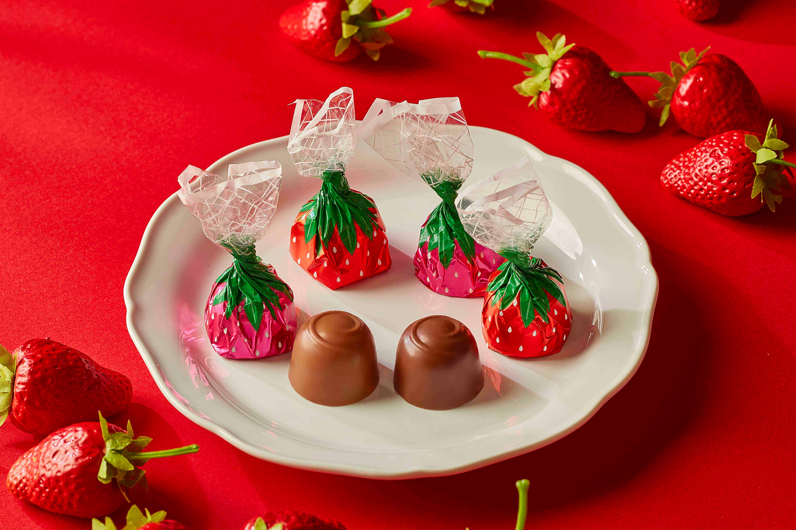 まるでフルーツをそのまま小さくしたような可愛らしい見た目に、懐かしくも新しい食感に、独り占めできない「はじける気持ち」が溢れ出します。パチパチはじけるキャンディが入ったイチゴ風味のチョコレートです。